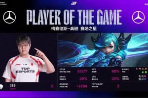 體育資訊8月5日訊 LPL第三賽段登峰組TES首局擊敗AL,369憑借首局格溫的亮眼表現(xiàn)斬獲對局MVP!