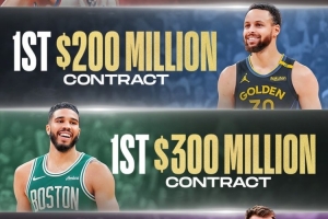 2024年,塔圖姆奪冠后5年3.13以續(xù)約綠軍,成為首個三億先生;