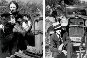 現(xiàn)實(shí)中,邦妮與克萊德在路易斯安那州比恩維爾被警方伏擊,最終在一陣槍林彈雨中喪命。盡管他們?cè)赶轮T如搶劫、謀殺等嚴(yán)重罪行,但這對(duì)亡命情侶仍被后人不斷浪漫化。