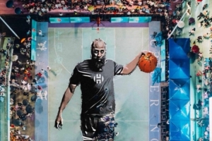 體育資訊8月6日訊 日前,快船球星哈登在中國行期間冒雨節(jié)目中國首座巨幅哈登球場。