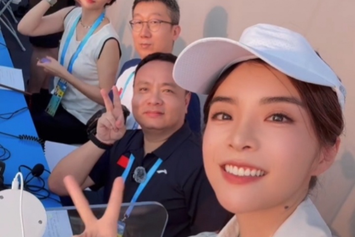 體育資訊08月07日訊 LPL女主持人余霜更新視頻,分享自己在成都世運會開幕式的視頻,余霜坐在了央視解說旁邊。