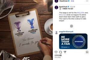 體育資訊8月8日訊 2025/26賽季亞冠抽簽儀式即將舉行,亞足聯(lián)官媒今日發(fā)文對抽簽儀式進行預熱,根據(jù)社媒顯示距離抽簽儀式還有一周。