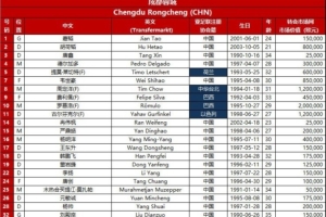 成都蓉城亞冠35人名單如下: