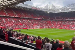 佛羅倫薩門將德赫亞重返老特拉福德,他在場上進行賽前熱身時,全場球迷們?yōu)樗蜕险坡暋?/p>