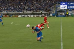 體育資訊08月09日訊 海港vs申花比賽中,吾米提江抬腳過高踢到路易斯,吃到一張黃牌。