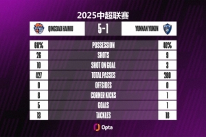 26/10 - 青島海牛本場(chǎng)比賽26次射門10次射正,期望進(jìn)球值為3.93,都刷新有數(shù)據(jù)統(tǒng)計(jì)以來(lái)(自2012年),球隊(duì)單場(chǎng)中超紀(jì)錄。