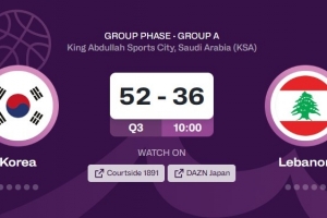 韓國男籃上半場三分如雨,25投13中,半場結(jié)束時52比36領先黎巴嫩16分。