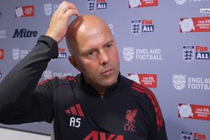 體育資訊08月11日訊 利物浦新賽季首戰(zhàn),在社區(qū)盾杯點(diǎn)球大戰(zhàn)不敵就水晶宮,賽后斯洛特接受采訪(fǎng)。