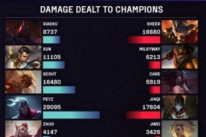 體育資訊8月11日訊 在今日的LPL第三賽段比賽上,F(xiàn)PX首局潰敗不敵JDG,而本局比賽中Care阿卡麗打出打出5919的傷害,而milkway的皇子打出6213的傷害!