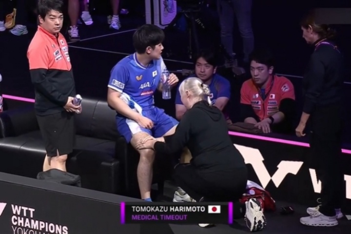 張本智和賽后采訪表示:王楚欽去換衣服的時候,我可能坐了2分鐘,站起來時候膝蓋扭到了下。第4局、第5局讓按摩的人幫我按了一下,打到第6局的時候有點(diǎn)堅(jiān)持不住了,那個時候暫停了一下。