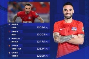 排在本輪跑動榜第3位至第5位的分別是薩爾瓦多、茹薩、馬德魯加,這3名球員都是后腰位置的外援,他們的跑動距離也都超過了1.2萬米。