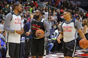 哈登:“這很瘋狂,這問題問得好。中鋒恩比德,我也考慮了霍華德。你說的是他們的巔峰時期嗎?哦,那我重新說??厍蚝笮l(wèi)這個位置競爭太激烈了,有CP3、威少,還有歐文。這太難選了。那我選歐文吧。歐文、威少、我、KD、恩比德,我喜歡這個陣容。陣容很小,但是我們能打快攻,能跑,有控球能力,還能投籃?!?/p>
