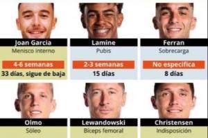 傷了一整套主力巴薩傷員:佩德里、萊萬(wàn)、拉菲、奧爾莫......