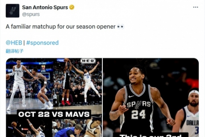 馬刺官推曬照表示:“揭幕戰(zhàn)又迎來了一個(gè)熟悉的對(duì)手???!?/p>