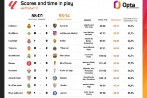 國家德比總時(shí)長(zhǎng)106分52秒本輪最長(zhǎng),但凈比賽時(shí)長(zhǎng)僅56分20秒列第5
