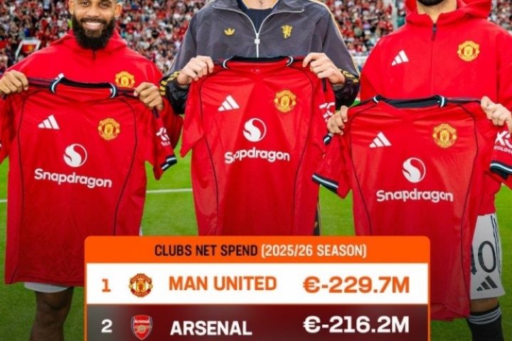 體育資訊08月13日訊 外媒LiveScore統(tǒng)計(jì)了夏窗目前為止歐洲足壇凈支出最多的五支俱樂(lè)部,曼聯(lián)、阿森納破2億歐領(lǐng)跑。