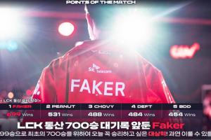 LOL歷史首位拿到單一聯(lián)賽700勝場為Faker,而LCK歷史第二勝場的Peanut目前只有531勝。