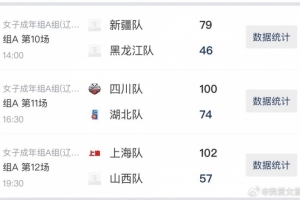 北京隊(duì)111-45天津隊(duì),鄭茗獨(dú)得17分,唐毓、柳佳琦各得12分。天津隊(duì)趙方欣17分,周怡君12分6籃板。