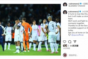 熱刺隊長羅梅羅社媒曬出賽后失落的照片,配文:“毫無疑問,以這樣的方式輸球令人痛苦,但這會讓我們作為一支球隊變得更強大。我們會努力拼搏,一起重現(xiàn)爭冠時刻。