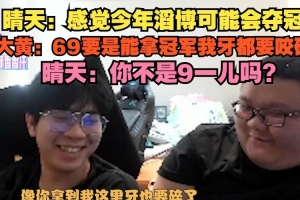 晴天:感覺(jué)今年滔博可能會(huì)奪冠,大黃:69要是能拿冠軍我牙都要咬碎,晴天:你不是9一兒?jiǎn)幔?/p>