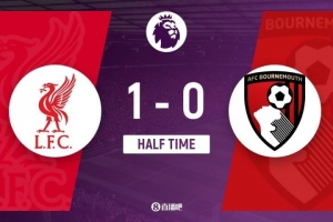 體育資訊8月16日訊 25-26賽季英超揭幕戰(zhàn),衛(wèi)冕冠軍利物浦坐鎮(zhèn)主場安菲爾德迎戰(zhàn)伯恩茅斯。上半場,薩拉赫、范迪克造險,?;倏诉B場破門并致敬若塔。半場戰(zhàn)罷,利物浦1-0伯恩茅斯。