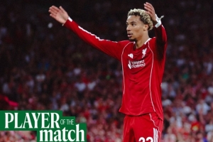 此役利物浦新援?;倏藗魃浣üΓ锲止俜叫?,?;倏水?dāng)選本場比賽隊(duì)內(nèi)最佳球員。