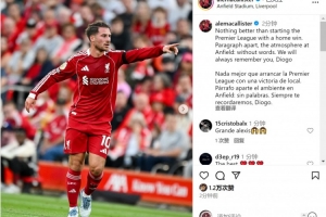 麥卡利斯特賽后在社交媒體上寫道:“沒有什么比以主場勝利開啟英超賽季更棒的了。安菲爾德的氛圍無以言表。我們將永遠懷念你,迪奧戈(若塔)?!?/p>