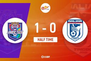 半場結(jié)束,天津津門虎1-0大連英博。
