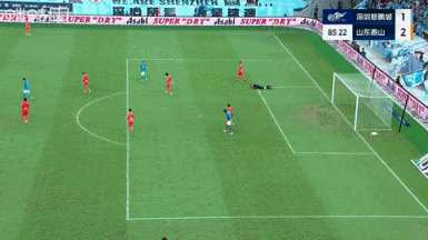 比賽第85分鐘,于金永在禁區(qū)內(nèi)將皮球放下后又重新抱起,二次觸球違例送給新鵬城一個間接任意球,蒂亞戈-列昂索的打門被擋出底線。