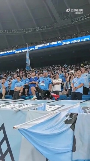 賽后,網(wǎng)絡(luò)中傳播的一段視頻顯示,新鵬城看臺(tái)有球迷手持?jǐn)U音喇叭辱罵泰山球員梅帥軍及其家人。