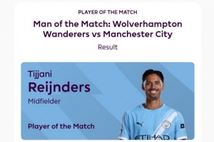 賽后據(jù)英超官方消息,曼城中場(chǎng)賴(lài)因德斯以52%的得票當(dāng)選此役全場(chǎng)最佳球員。