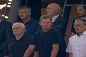 德國(guó)國(guó)家隊(duì)主帥納格爾斯曼來到了現(xiàn)場(chǎng),觀戰(zhàn)此役。