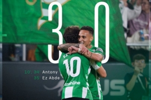 2射1傳主宰球場!安東尼當(dāng)選貝蒂斯vs馬洛卡全場最佳球員