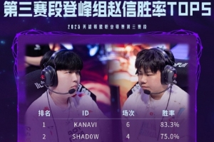 趙信是2025賽季打野位選擇最多的英雄,第三賽段登峰組趙信勝率TOP5(使用3場(chǎng)以上)中,Kanavi以83.3%的勝率位列第1,shad0w以75%的勝率位列第2。