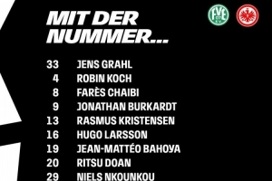 法蘭克福首發(fā):33-格拉爾、4-科赫、8-查伊比、9-布爾卡特、13-拉斯穆斯-克里斯滕森、16-雨果-拉爾森、19-巴霍亞、20-堂安律、29-恩庫(kù)恩庫(kù)、34-納姆迪-科林斯、42-烏尊