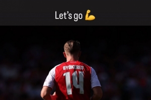 體育資訊8月17日訊 本輪英超焦點(diǎn)戰(zhàn)阿森納對(duì)陣曼聯(lián)即將開始,阿森納新援約克雷斯在個(gè)人社媒曬出照片為本場(chǎng)比賽預(yù)熱,配文寫道:“加油!”