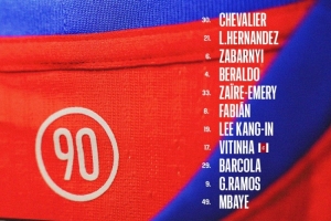 39-薩福諾夫、89-貝魯奇、 2-阿什拉夫、5-馬爾基尼奧斯、 25-努諾-門德斯、 51-帕喬、7-克瓦拉茨赫利亞、10-登貝萊、14-杜埃
