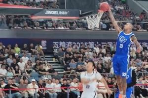 著名演員鄧超的一記上籃遭遇庫茲馬大帽扇飛,前者愣在原地。
