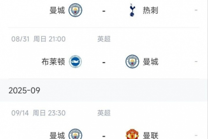 作為奪冠大熱門之一,曼城在第1輪就開始領(lǐng)跑英超。但是接下來4輪球隊將面臨嚴(yán)峻的考驗,他們將連續(xù)對陣熱刺、布萊頓、曼聯(lián)和阿森納。