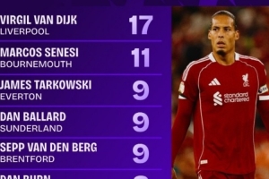 體育資訊8月20日訊 新賽季英超首輪比賽已經(jīng)結(jié)束了全部爭奪,根據(jù)Squawka的數(shù)據(jù)統(tǒng)計,利物浦中衛(wèi)范迪克是本輪解圍次數(shù)最多的球員。