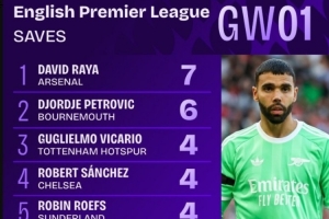 體育資訊8月20日訊 新賽季英超首輪比賽已經(jīng)結束了全部爭奪,根據(jù)Squawka的數(shù)據(jù)統(tǒng)計,阿森納門將拉亞7次撲救為本輪最多。