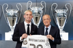 這位阿根廷小將自帶光環(huán),眼神中透著靈氣,極具魅力。即便那些從未看過他比賽的人,也會(huì)被他激起熱情。馬斯坦托諾擁有如絲綢般細(xì)膩的左腳技術(shù),總在場(chǎng)上主動(dòng)要球,熱衷于挑戰(zhàn),還帶著阿根廷球員特有的賽場(chǎng)拼勁。我敢說,用不了多久馬斯坦托諾就能成為皇馬主力,他最終會(huì)與姆巴佩、維尼修斯組成皇馬鋒線三叉戟,我愿意為此打賭。