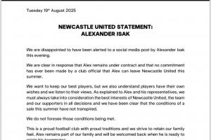 紐卡在聲明中表示:今夏轉會條件尚未達成,球隊也不認為這些條件會得到滿足。因此伊薩克大概率走不了,但喜鵲隨后在文末示好:亞歷山大仍是我們大家庭的一員,當他準備好重返球隊時,我們將熱烈歡迎他回歸。