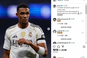 阿諾德此役為皇馬首發(fā)出戰(zhàn),上演西甲首秀,賽后他在社交媒體上慶祝勝利:“在我的新主場(chǎng)踢球感覺太棒了,勝利是開啟新賽季的完美方式。”