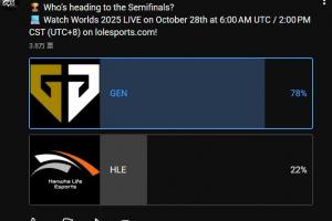 LoL官方發(fā)布淘汰賽預(yù)測投票:認(rèn)為GEN獲勝的占比78%
