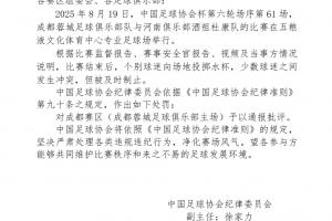 體育資訊08月22日訊 足協(xié)官方發(fā)布公告,蓉城主場球迷投擲水杯+沖突,對成都賽區(qū)通報批評。