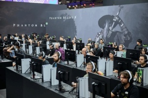 與其他展臺不同的是,《影之刃零》展區(qū)并未設置舞臺區(qū)和coser表演,也沒有大型布展雕像等裝飾,全部展臺空間都用于填充 60臺試玩機器,以最大限度地容納玩家們試玩游戲。盡管如此,現(xiàn)場的火爆程度仍遠超預期——自10點正式開展,玩家們便一擁而入,內(nèi)場試玩機器瞬間座無虛席。僅10分鐘,排隊區(qū)就已徹底爆滿,10點半左右,甚至達到展臺容量上限而被迫暫停排隊,但大量玩家仍堅持等候不愿離去。