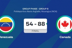 體育資訊8月23日訊 男籃美洲杯小組賽,委內(nèi)瑞拉男籃54比88慘敗給了加拿大男籃。
