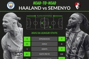哈蘭德與塞梅尼奧數(shù)據(jù)對比:前者進(jìn)球和射門更多,后者助攻數(shù)占優(yōu)