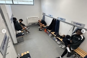 長(zhǎng)凳上方的名牌標(biāo)注著奇爾維爾、楚克烏梅卡、烏戈丘庫(kù)(已轉(zhuǎn)會(huì)伯恩利)及迪薩西的名字,明確了該區(qū)域使用者。更引人注目的是吉爾克里斯特,照片中他雙手抱頭頹坐角落。